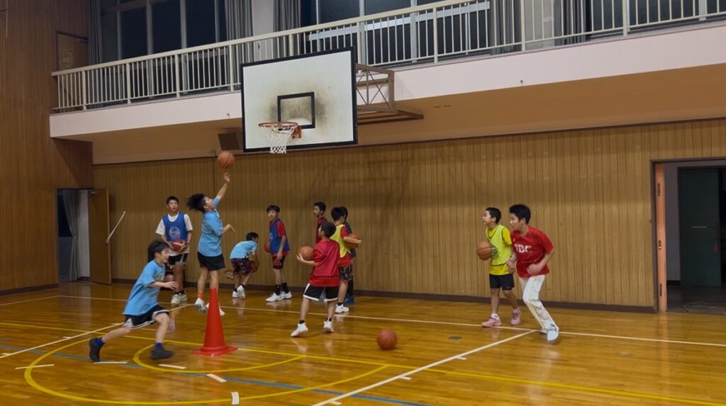 練習中のコミュニケーションを高める方法として3Sを子供達に伝えました。声を出すだけではなく拍手やハイタッチなどの身体を使ったコミュニケーションも練習内の質を高める一つの手段となります。INUYAMA BASKETBALL CLUBでは「声」を大切にしていますが、同じように自分たちがより熱心に練習に入り込みやすい空間を自分たちでデザインできるように他の2つもチャレンジして欲しいですね。