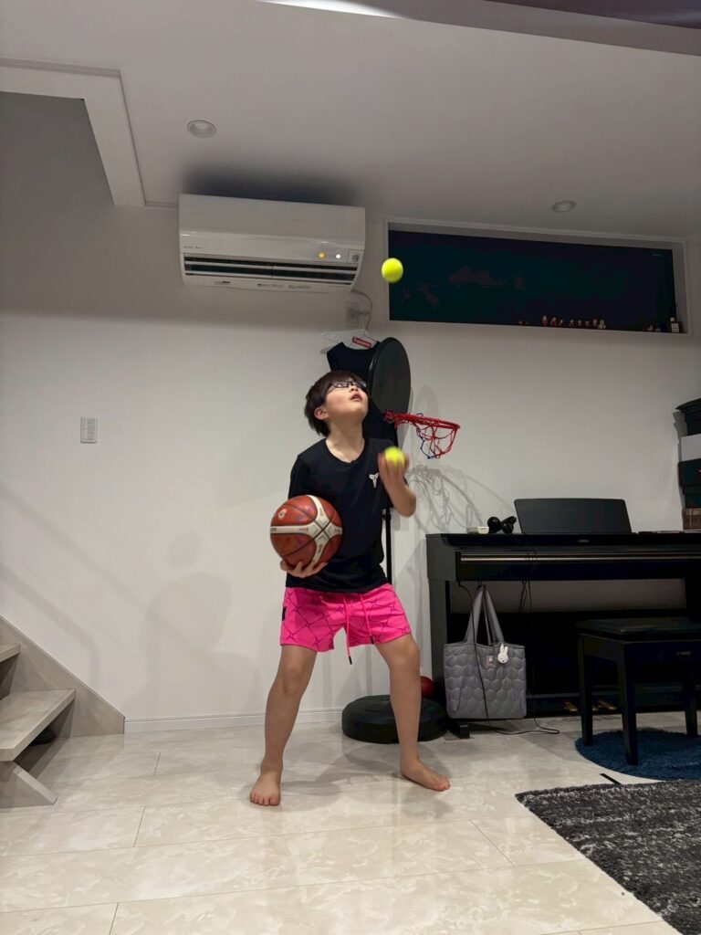 最初のトレーニングは足指のストレッチと股関節のストレッチを行い、最近できていなかったジャグリングを行いました🎾🏀