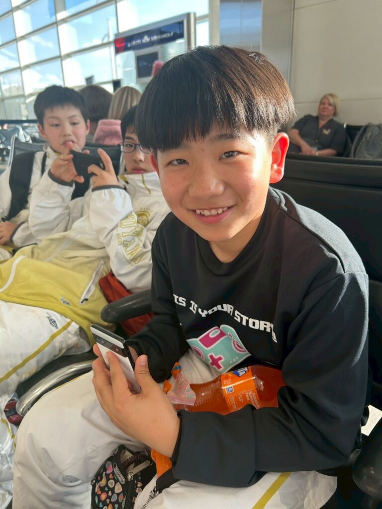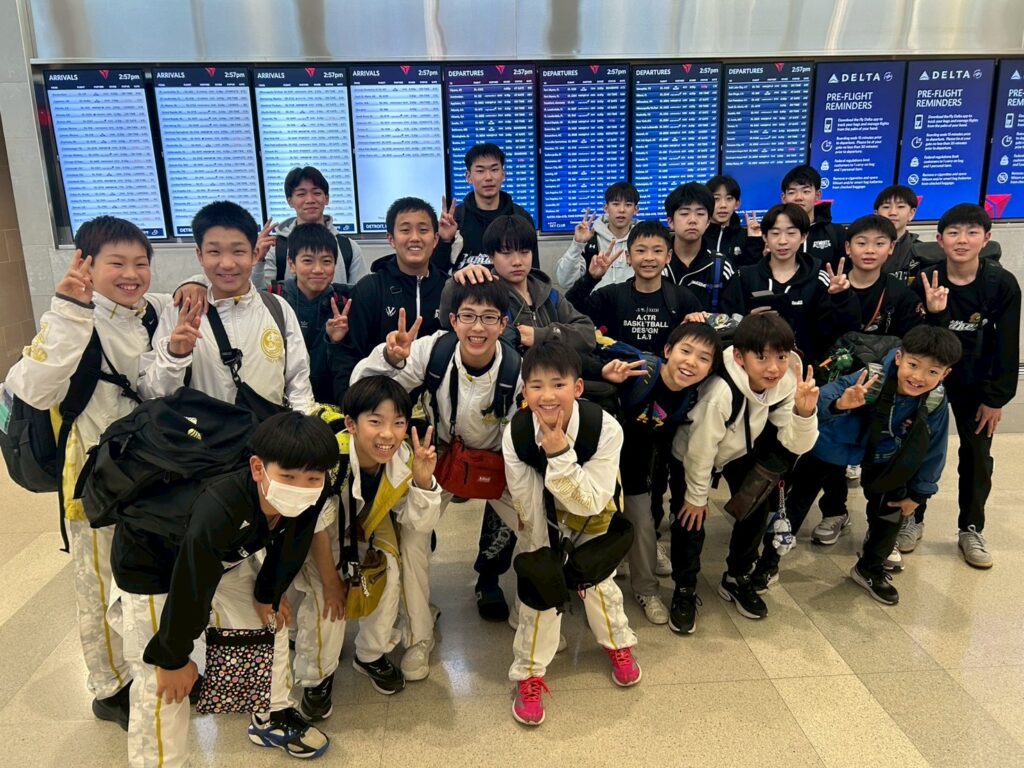集合場所である羽田空港に到着した際は、初めて会う選手たち同士でどこかよそよそしさも感じる子供たちですが、時間が少したてばあっという間に仲良くなるのもまた子供たち。このようなツアーではバスケットだけではなく、コミュニケーション力を高めることも学びのひとつとして大切な要素になります。最初はだいたいが自チームで固まっているみんなですが、時間の経過とともに次第に打ち解けていくといい意味でグループが解けていくのが面白いですね。