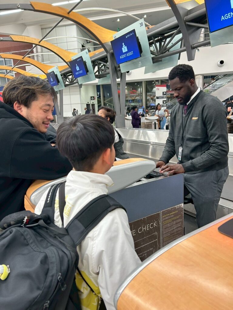 早朝4時起床し、出発して空港へ向かいましたが、無事にチェックインすることができました。